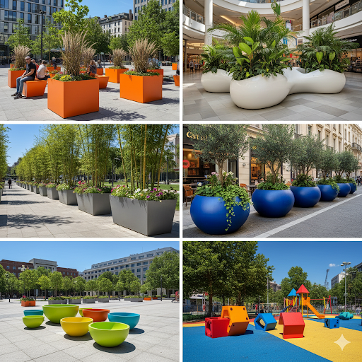 - Kamusal Alanlar: Yoğun yaya trafiğinin olduğu meydanlarda, darbelere dirençli büyük boy küp fiber saksılar tercih edilir.